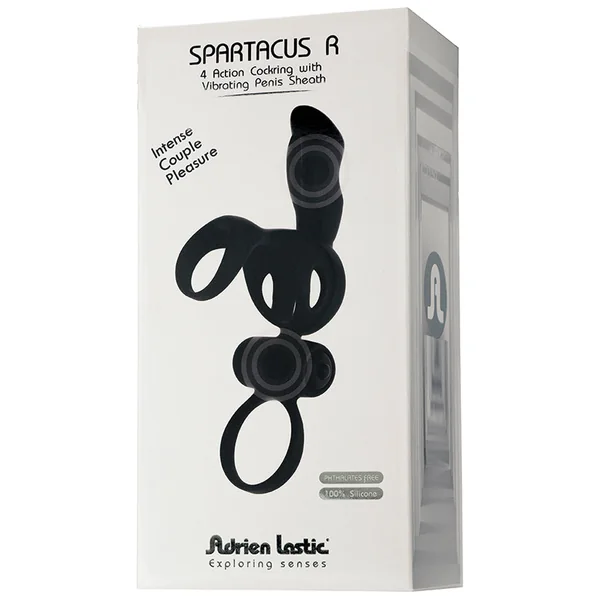 Spartacus R provides clitoral stimuli and testicles simultaneously with the push of a button. Double rings create a longer session for her and one greatest feeling for him. The penis sheath that intensifies sex increases the width of your member And it also securely holds the base of your shaft for a sturdier, more welded erection.