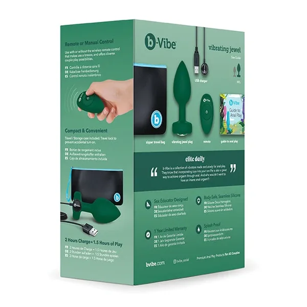 b-Vibe Remote Control Vibrating Jewel Plug (M/L) – Emerald Green