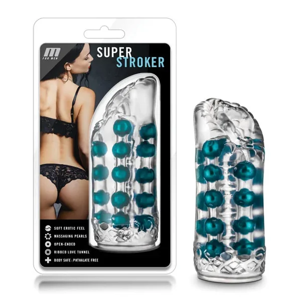 Experience unparalleled pleasure with the Blush M for Men Super Stroker – Clear, designed specifically for the man on the go. This innovative stroker promises to elevate your intimate moments, delivering intense stimulation that keeps you coming back for more.Crafted with a sensuously soft, stretchy material, the Super Stroker features a ribbed canal lined with four rows of pleasure pearls that expertly massage your shaft. At 5.5 inches long, it warms to the touch, providing a slippery, inviting experience that enhances both solo and partnered play. Whether you want to indulge in personal pleasure or incorporate it into foreplay, this versatile tool is perfect for any occasion.Don’t miss out on the chance to transform your intimate experiences. Grab the Blush M for Men Super Stroker today and discover the ultimate way to enjoy pleasure, anytime and anywhere.Product Details:• This tunnel of lovin is 5.5 inches long, warms to the touch and is definitely slippery enough when wet, that you will cum again and again.