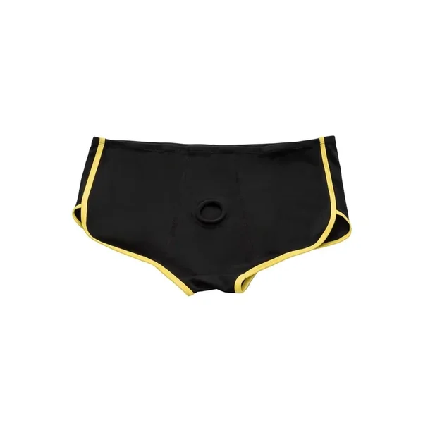 The Boundless™ Black & Yellow Brief allows for discreet, efficient, and pleasurable harness wear. Its sleek and stylish design, combined with practical features, make it a vital addition to any intimate wardrobe.