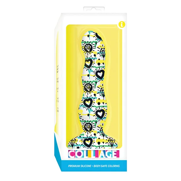 Collage Diamonds & Hearts Curvy Silicone Dildo