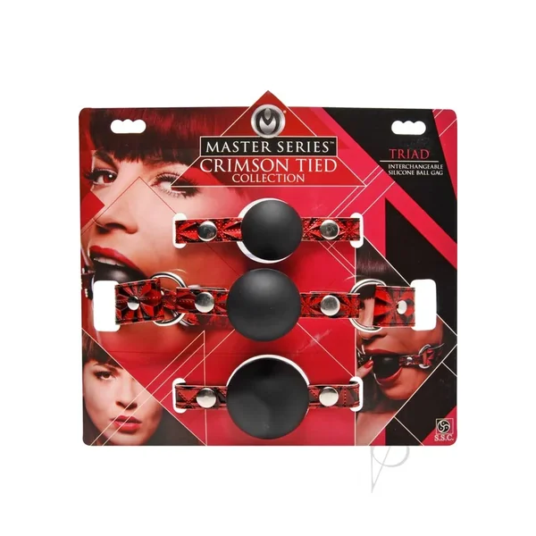 Get 3 ball gags in one with this innovative interchangeable ball gag system! Just select the size you want and snap the gag into the strap. The ball gag system comes with one strap and 3 different sized ball gags made of odorless, tasteless silicone. The diamond embossed red faux leather will look stunning as it restricts their speech. The back has an adjustable rolling buckle and is one size fits most. Size Strap Length: Adjusts up to 24 Ball Gags (Balls) Diameter: 1.5, 1.7 and 2