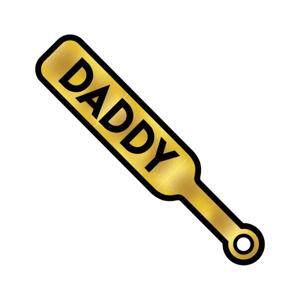 Daddy Paddle Pin from Wood Rocket Sex Toy collection. This fun soft enamel lapel pin by Wood Rocket is the perfect accessory. Wear your sex product pride! This paddle Sex Toy Pin is gold with black text and looks just like a fetish BDSM paddle that says Daddy but it is tiny! Stick it on your hat or clothes or back pack or bag or purse it or give it as a gift! Please do not stick it on your butt. It is sharp! Check out these other Sex Toy Pins by Wood Rocket: Different Colored Dildos, Vibrator, Wand, Strap-On, Bitch Paddle, Spank Me Paddle, Slut Paddle, Handcuffs, Fuzzy Handcuffs, Flogger, Butt Plug, Gem Butt Plug, Ball Gag, and more! And everything from Weed Pins and Porn Pins too. Categories: Bondage, Fetish, Kink, Party Games, Gifts, Supplies, Adult Gags, Gifts and Novelties, Pasties, Accessories. Adults only please. 2023.