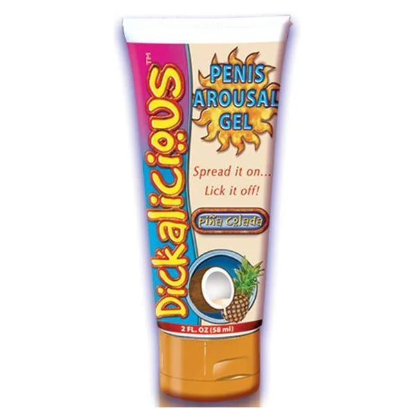 Dickalicious Penis Arousal Gel comes in 4 Dickalicious fun flavors: Banana, Strawberry, Raspberry and Pina Colada. Each sold separately. Gel is sure to ignite a fire in your lover’s libido! This amazing gel is preferred by customers the world over for its tingling sensation and succulent flavor! Easy to use. Spread it on and lick it off and watch your lover grow wild with excitement! 2 ounces tube. Pina Colada Dickalicious Penis Arousal Gel from Hott Products Unlimited.