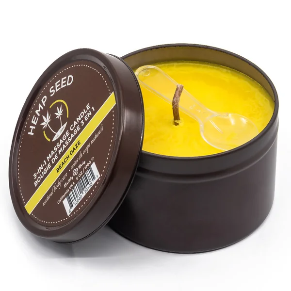 Transport yourself or your special someone to a realm of relaxation with this Hemp Seed 3-In-1 Massage Candle in the Beach Daze Scent by Earthly Body!