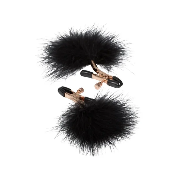 Designer feather nipplettes with soft comfortable pads. Includes 2 fully adjustable multi-use clamps. Tickling feathers. Non-tarnishing Nickel-Free.
