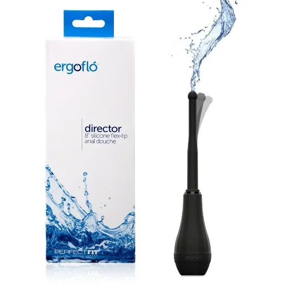 The ergofló director anal douche comes with a medical grade contoured bulb featuring air valve technology. This industry-first reduces messy back-flow, requiring fewer refills. Director comes with an 8” (20 cm) silicone flex-tip nozzle, and a 3” (20 cm) stowaway tip.