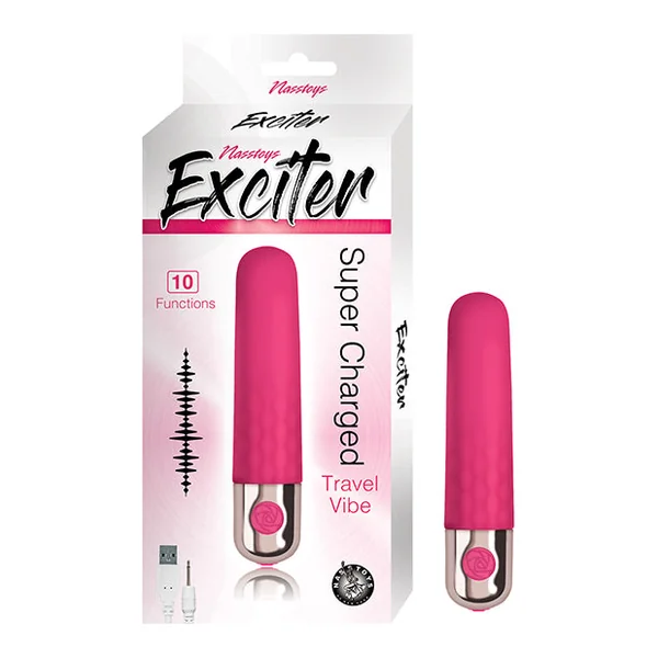 Exciter Travel Vibe. 10 functions. Phthalates freeWaterproofMaterials: Silicone, ABSSize: Length – 3.85?, Width – .875?, Diameter – 2.75?Rechargeable, Charging time – 30 min., Working time – 30 min.