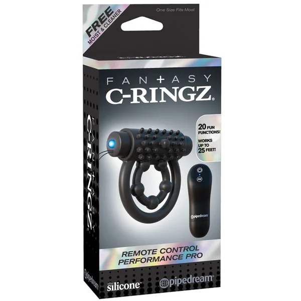 The days of fighting over the remote are over! Introducing the Remote Control Performance Pro, the amazing professional-grade ring that puts your partner in total control of the fun! Driven by an RC frequency that works up to 25 feet, this wireless wonder is the ultimate dual-action enhancement ring. Take control of the remote yourself or surrender it to your partner and give them total control! The wireless remote allows you to cycle through 20 thrilling pulsation patterns to find a function that’s just right for you! You control when and how often the bullet vibrates, while you both enjoy the kind of sex you’ve only dreamt about. He’ll enjoy thicker and fuller erections, prolonged ejaculations, and an overall boost in confidence! His partner will love the added vibrations, tiny ticklers, and increased stamina. You both will enjoy taking turns to control the remote! Made from body-safe, phthalate-free Elite Silicone, this ring easily stretches for maximum comfort. The top ring wraps snug around your shaft while the bottom ring wraps around your penis and testicles. Try both rings pulled behind your whole package for an extra tight squeeze! The stretchy ring gently puts a clamp on performance letdowns to make you bigger, thicker, and harder than ever before!