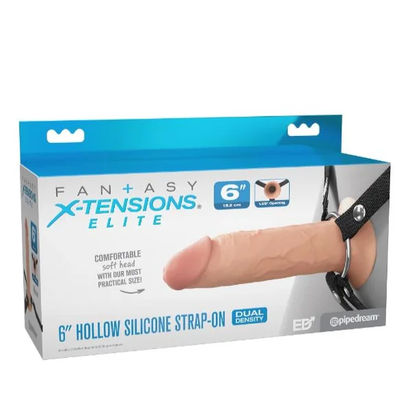 FANTASY X-TENSIONS ELITE 6IN SILICONE HOLLOW STRAP-ON DUAL DENSITY – LIGHT