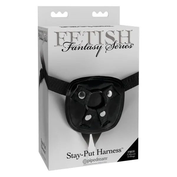 Fetish Fantasy Series Stay Put Harness Black from Pipedream Products. When you are looking for an affordable strap on harness that can do it all, the Fetish Fantasy Series harnesses are just what you need to get the job done. Pipedreams has re-imagined our best selling harness designs, improving them with even better shapes and materials to offer the best range of harnesses for beginners and strap on aficionados alike. Compatible with most dildos, these harnesses perform best with Pipedream’s Fetish Fantasy Elite Suction Cup Dildos and Basix Suction Cup Dildos. Perfect for first timers, the Stay Put Harness is made with a soft Neoprene backside that prevents chafing and feels great against your skin, while the shiny patent outside is sleek and inviting. The durable 4 way adjustable Nylon straps feature easy Plastic slides for the perfect fit on waists up to 44 inches and thighs up to 40 inches. The low rise fit is super comfortable, while the four metal snaps secure the O Ring and hold everything in place even when the action heats up. Three included silicone O Rings allow you to interchange a range of dildos with a diameter up to 2 inches. Please not harness is shown with dildo for how to use. Not included. Shipping information: package depth 3 inches, width 5.5 inches, height 9.25 inches. Package shipping weight 5 ounces. Package type Box. Materials: Straps Nylon, Body Vinyl, Hardware Metal, Plastic, O Rings Silicone. 90 days warranty. Country of origin China. Pipedream Products Catalog – Fetish Fantasy Harness Collection. Categories: Bondage, Fetish, Kink, Sex Toys for Couples, Strap Ons, Harnesses, Body Harnesses. 2022.