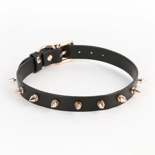 This eye-catching choker necklace is made from ultra-soft faux leather, studded with alternative-chic spikes in a stunning gold shade rather than the grunge-favourite silver of classic spiked dog collars. It’s the perfect way to add a luxurious touch of visual drama and edginess for glam gold goth or vampy lingerie, fetishwear, or everyday outfits! This choker is suitable for everyone to wear thanks to the nickel-free gold metal hardware and vegan-friendly materials — simply adjust the rear buckle for your perfect fit and tuck the tail into the sliding keeper for a sleek and polished finish.