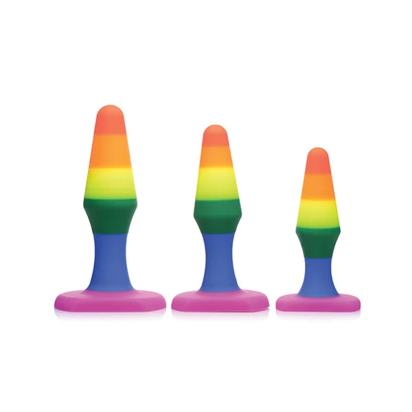 Take pride in your anal play! A colorful little set perfect for backdoor training. The premium silicone is velvety to the touch and the tapered tips make for a gentle insertion while you have fun working your way up in sizes. The flexible neck make these perfect for solo discovery or to use with a partner.