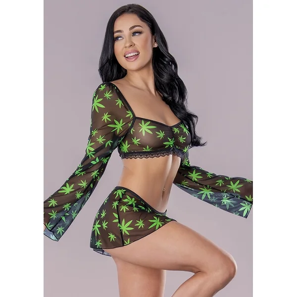 HAZY DAYZ CROP TOP SKIRT & G STRING POT LEAF L/XL