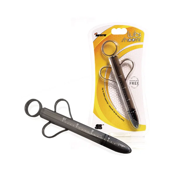 Ignite Lube Shooter – Black/LENGTH: 7.5in/19cm DIAMETER: .75in/1.9cm .MATERIAL: ABS (phthalate free) FEATURES: Up to 20ml capacity, silicone seal ring, smooth tip for easy entry, waterproof.