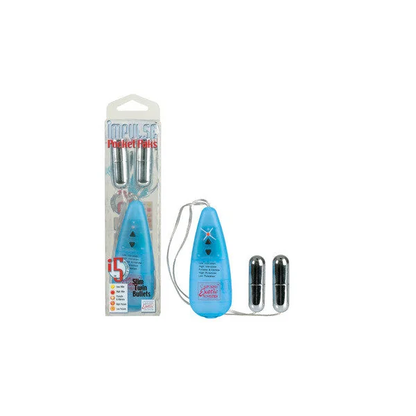 Enjoy double the stimulation pleasure with the discreetly sized Pocket Exotics Impulse Silver Slim Twin Bullets. The compact personal massager comprises of 2 bullet shaped stimulators and EZ touch controls. The mini vibe boasts 5 intensely powerful vibration and pulsation functions that are perfect for orgasmic satisfaction at your leisure.