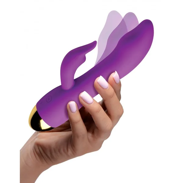 Inmi 10X Come Hither G-Focus Silicone Vibrator from XR Brands. Experience G-Spot bliss with this specialized vibrator and clit stim combo! Specifically designed to stimulate the G-Spot with its come hither motion, this silky shaft will pleasure you inside and out with its wiggling shaft and buzzing clitoral stimulator. Equipped with 3 come hither motions and 10 vibration patterns, pick the perfect combination to suit your mood and play style! The dual motors in the shaft and clitoral stimulator can be controlled individually for customized pleasure, do you prefer strong buzzing in the shaft but have a sensitive clitoris? Use the low power setting on the clitoral stimulator and turn up the vibration in the shaft to suit your needs! The IPX7 waterproofing lets your use this luscious vibe in the shower for some steamy G-Spot fun, and also makes cleaning a breeze! Compatible with water based lubricants, but avoid use with silicone based lubes. Made with super silky, phthalate free silicone for a premium body safe toy you deserve! Rechargeable via included USB charging cable. Measurements overall length 7.9 inches, insertable length 4.5 inches, widest insertable diameter 1.4 inches, narrowest insertable diameter 1.2 inches. Materials Silicone, ABS plastic. Color Purple.