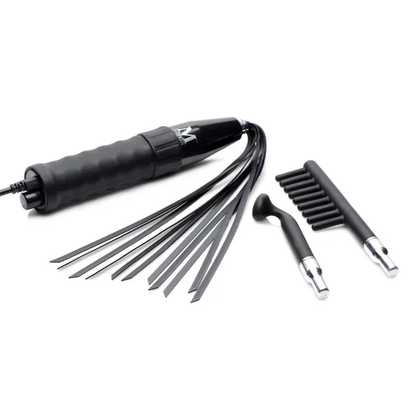 Deliver a sensual shock with this exquisite violet wand kit, complete with 3 silicone accessories. The round-tipped attachment will deliver targeted electro-stimulation wherever you want, pinpointing pain and pleasure. The comb will transmit the current with precision through each of its 9 teeth, delivering a delightful shock on excited flesh. The flogger can be teased gently along the skin or swung back for a sharp slap, but either way it will deliver invigorating jolts into your partner. The wand allows you to adjust the level of E-stim while a long cord gives you the mobility to circle your prey. The ergonomic silicone handle provides a steady grip. This wand is compatible with most violet wand attachments for the utmost versatility.