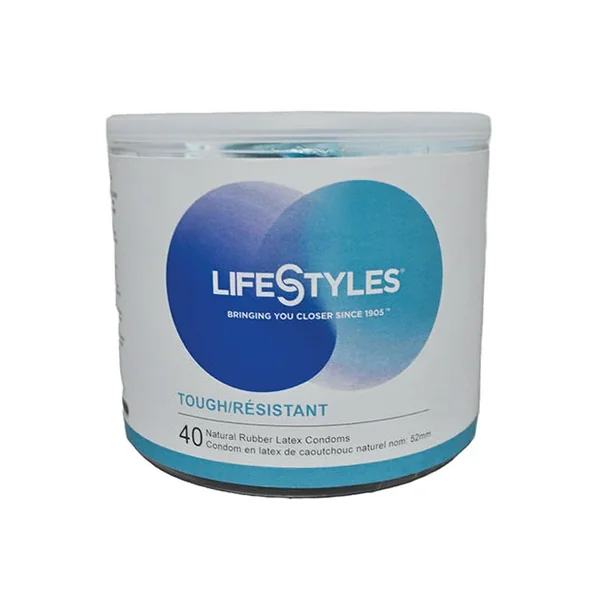 Lifestyles Tough is one of the thickest condoms (.09mm) made today. The increased thickness makes this Lifestyles more durable. Lubricated and made out of Latex.40 condoms per bowl.