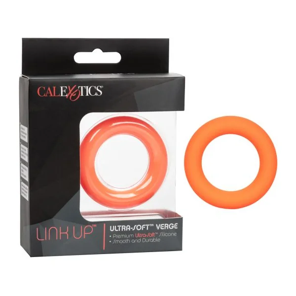 Link Up Ultra Soft Verge Orange Cock Ring from California Exotic Novelties. From bashful beginners to erotic experts, the Link Up Ultra Soft Verge will wrap you up tight in pleasure with the ultra plush, ultra stretchy enhancer ring. This uniquely textured cock ring is made to increase stamina, improve sensitivity and deliver superior erection support. Look for to an explosive pleasure experience while the plush ring squeezes with every movement. The premium Ultra Soft silicone is body safe, unscented and phthalate free to keep you most sensitive spots, happy and healthy. Color Green. Materials Silicone. Features Phthalate Free, Waterproof. 1 year warranty. Measurements 1.5 inches ring. Bulk weight 0.7 ounce. Package 1.9 ounces. Package 5.5 incehs by 4 inches by 1.5 inches.