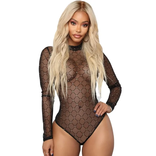 This mesh teddy is made from a very sheer fabric, this high-neck bodysuit is sexy, sexy, sexy.