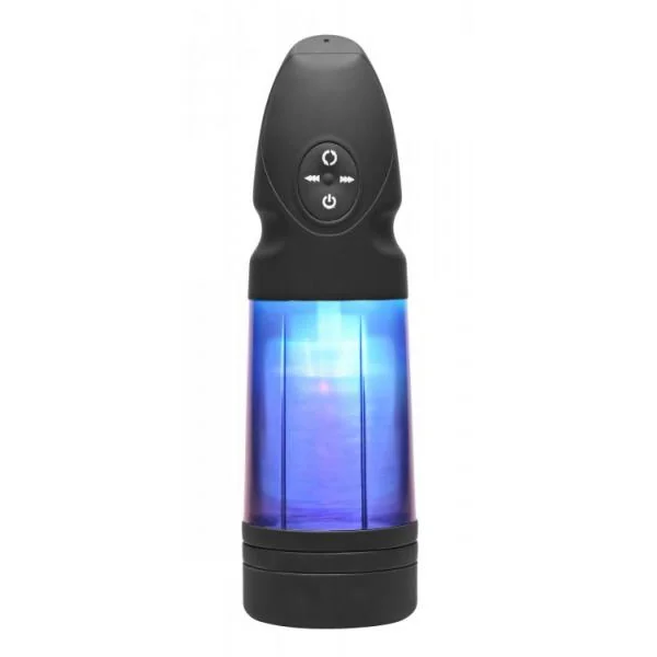 This multi function, automatic, rechargeable stroker is loaded with features for an incredible masturbation experience! The inner chamber is made of firm, stretchy rubber, lined with textured fingers to stroke you into ecstasy. The thrusting and swirling motion will move up and down your cock, stimulating you with every stroke. With 6 modes and 3 speeds to choose from, you can choose how fast or slow you want it. Splash proof and designed for an easy grip, this easy to use masturbation aid does practically all the work for you. In addition to all these exciting features, it even has a light-up display, for an incredible one-man show! Includes a USB cord so you can charge it on the go, just plug into your nearest USB port to power up, making it the perfect companion for computer viewing.