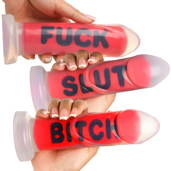 - Explicit Text Label: Add another layer of psychological play to your intimate moments by screwing yourself or someone else with a dildo that’s labeled ‘bitch’, ‘fuck’ or ‘slave’!