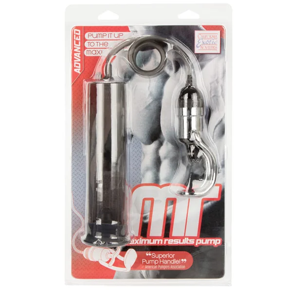 Take it to the Max with California Exotic Novelties’ Max Results Pump. This enhancement pump has a powerful master grip handle, a transparent smoked cylinder with incremental measures, flexible hose and a soft, silicone donut, all designed to deliver the max results for you. Features include: quick release purge valve; newly designed master grip finger pull hand pump; flanged base for use with or without the included Silicone tapered sleeve. ABS with Silver Plating (handle), Phthalate free PVC (hose), SAN (cylinder), Silicone (sleeve). 9.25″ cylinder; 2.25″ diameter.