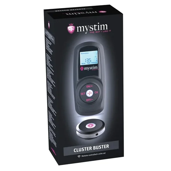 The Mystim Cluster Buster comes with a stylish storage box, a remote control, a receiver, a bi-polar electrode and a user manual. The device is “only” supplied with a receiver, but can control an unlimited number of receivers, the “Mystim Sultry Subs”.