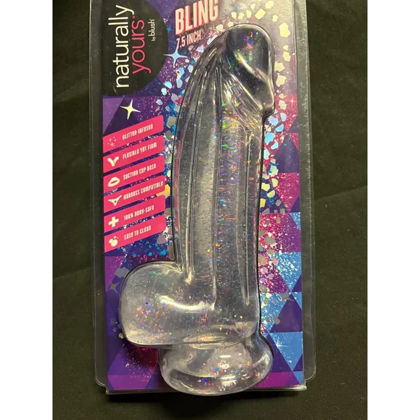 Get ready to shine with Naturally Yours Bling 7.5 Inch Dildo! This dazzling, glitter-coated pleasure companion delivers a perfect mix of firmness and flexibility to match your every move. Its 7.5-inch length brings satisfying fullness, while the suction base lets you go hands-free or slip it into your favorite harness for sparkling fun. Made from 100% body-safe TPE, Bling is easy to clean and designed to keep the party going. Add a little disco to your playtime and let Bling steal the spotlight!