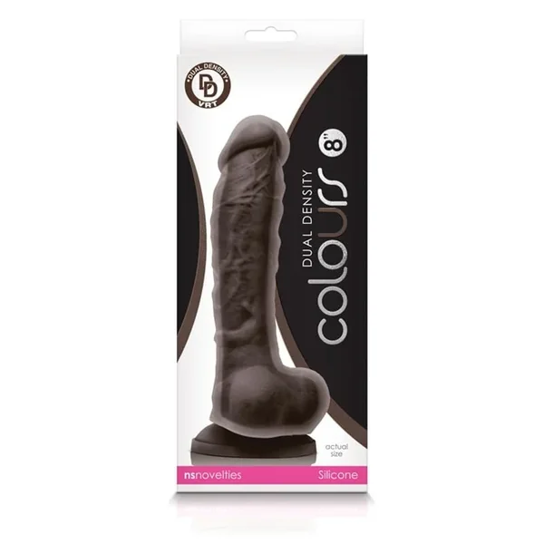 NS Novelties Colours Dual Density 8″ Dark Brown Dildo, colours dual density is two layers of dreamy pleasures. Firm on the inside, soft on the outside. Strong suction cup, platinum grade silicone and suitable for all lubricants. Just like real, but better.