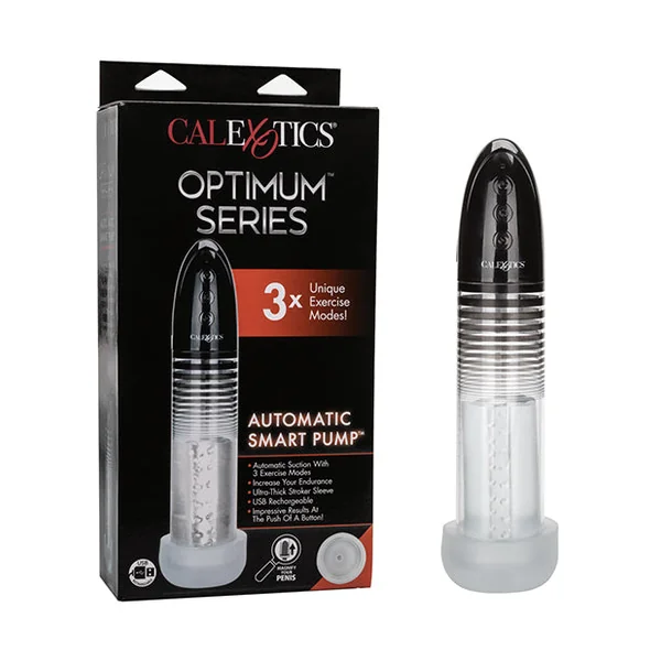 Maximize your pleasure tool with the Optimum Series® Executive Automatic Smart Pump, a massive penis pump made for bigger and better results with every use. Increase endurance, improve stamina and amplify your rod with 3 unique enhancement exercise modes.The extra-large smart pump has easy-touch controls and a quick air release button for customizable pumping. While the thick open-end sleeve and tight, nubbed chamber give you sinful stroking pleasure with or without the pump. Never settle for less when it comes to the size of your pleasure with the Optimum Series®.The cylindrical pump and thick, durable sleeve are designed to create the perfect seal and powerful suction at the touch of a button. Once you’ve reached your peak pump, use the quick air release to decrease suction or release seal. When used regularly, this powerful pumper can increase stamina, enhance overall size and amplify sensation. Recharge the premium pump in 90 minutes with the provided USB charging cable to enjoy up to 12 hours of total run time. To track progress, use the incremental measurement marks on the cylinder shaft.The premium stroker sleeve fits into most standard pumps, but can be used independently for a passionate stroking experience. The premium TPE is a body safe, unscented and phthalate free to keep you most sensitive spots, happy and healthy. Enjoy easy clean up with this maintenance free stimulator sleeve, simply wash with soap and warm water before and after each use. Use ample lubricant for easy insertion.