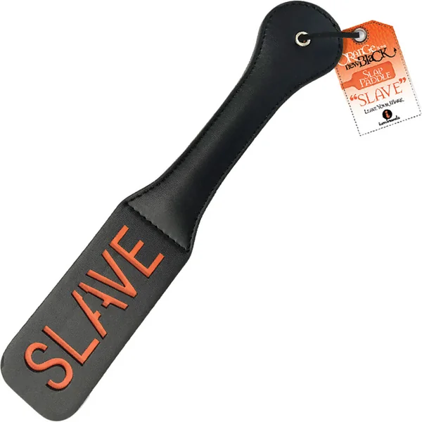 - Leather slap paddle with SLAVE impression