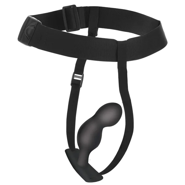 Indulge in prostate pleasure for hours at a time with this specially designed harness and plug! The plug itself is smooth, plush, premium silicone that is compatible with all water-based lubricants. It’s phthalate-free and body-safe to use. Attach it to the easily adjustable nylon harness to keep it securely in place as you engage in other activities and get into all kinds of positions! Secured in place, it won’t fall out no matter the size! The shape of the plug is specifically designed to push against your P-spot so you can milk it and tease yourself to the edge of release! Combine that pressure with 4 speeds and 7 patterns of buzzing vibration that you or your partner control with the battery-operated remote!
