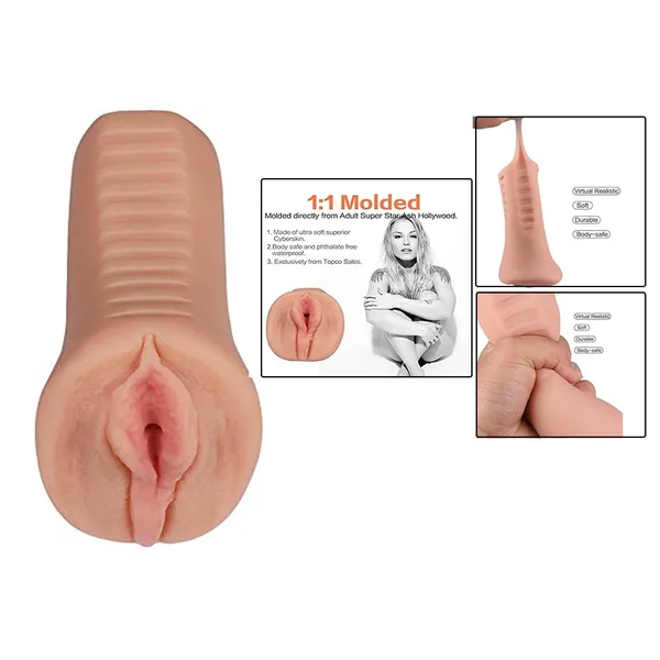 Molded directly from bubbly Penthouse Video Vixen Ash HollywoodSoft, supple CyberSkin pussy feels just like the real thingSlide into Ash`s sweet, hand painted pussy lipsFeel the thick-ribbed tunnel slide up and down your cock with every strokeTextured exterior is easy to grip even when lubricatedOversized stroker feels like a full sized toy, but is easy to storeWaterproof to use anywherePhthalate freeMade in USA.