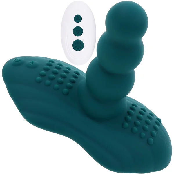 Experience an exhilarating pleasure adventure with Have A Seat. This remote-controlled ride-on toy features a thick shaft topped with a rounded bulb and graduated beads leading to a textured vibrating grind pad for deep stimulation.