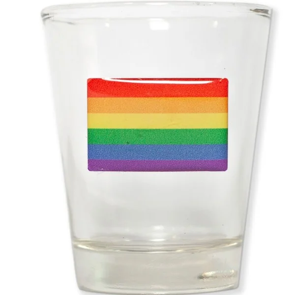 It is a shot of glass with a drop of resin with the flag of lgbt pride.