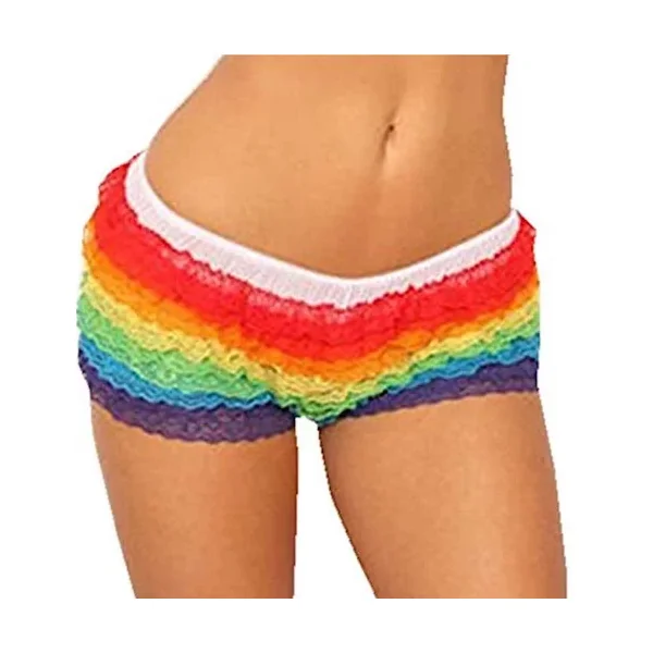 Wear Your Pride! with these Ruffled Lace Rainbow Rumba Shorts.