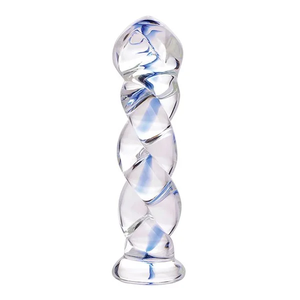 Embrace ecstasy with this erotically twisted dildo! The Soma Twisted Dildo has a twisted shaft that enlarges toward the top for amplified stimulation and features a modestly curved tip for tempting the G-spot. Soma is beautiful on the inside as well, with a subtle indigo wisp inside its center. Made from the finest polished glass, Soma is stunningly luxurious and designed to penetrate. Turn up the heat as your body temperature warms the glass, or use warmer water for even more intensity. Cool it down with a little ice as well, the sturdy borosilicate glass is durable, easily sterilized, non-allergenic, non-porous, and compatible with all lubes. Includes a complimentary storage satchel.