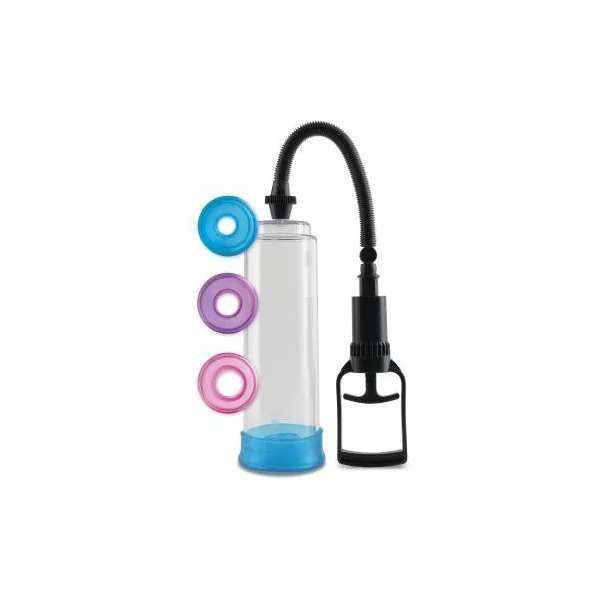 Increase your size and confidence without dangerous medications or expensive surgeries with this safe and easy-to-use Pump Worx Cock-Trainer Pump System from Pipdream. With each pull of the Sure-Grip pump trigger, your pleasure rod will grow bigger, thicker, and swell with power. Once you penetrate the smooth, flexible PVC opening, you’ll quickly discover throbbing, rock-hard erections that last and last, with no midway performance letdowns! The clear vacuum tube allows you to watch your cock grow, and the quick-release valve relieves pressure with a push of the button. The amazing training system is perfect for beginners and includes 3 soft PVC sleeves that gradually increase in diameter.