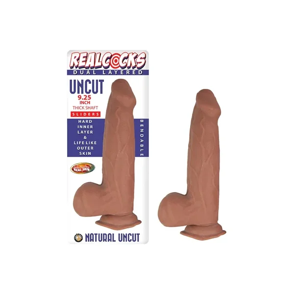 RealCocks Dual Layered Uncut Slider 9.25″ Thick Shaft-Brown