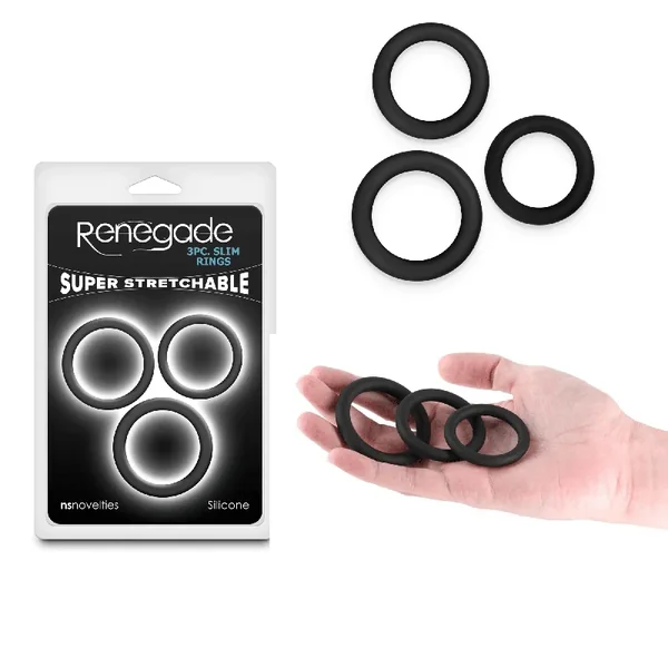 Renegade Slim Silicone Male Penis Rings 3pc Black