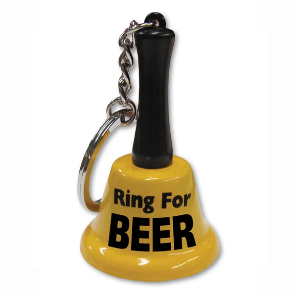 The Ring For Beer Bell Keychain is the perfect gag gift for anyone who loves having their favourite beverage delivered to them without moving!