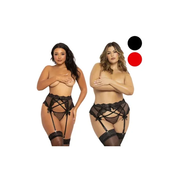 Two Piece Garter Belt Set. Dot Mesh Garter Belt With Lace Trim STM-11657