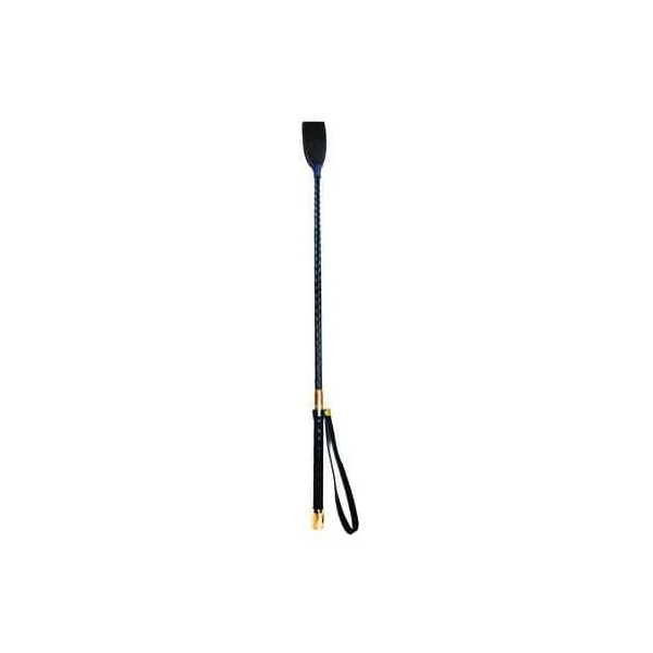 The Please Crop creates a bite with its faux leather head. It is adorned with rose gold caps, a black wrist loop, a tightly woven brain for a shaft, and a faux braided handle.