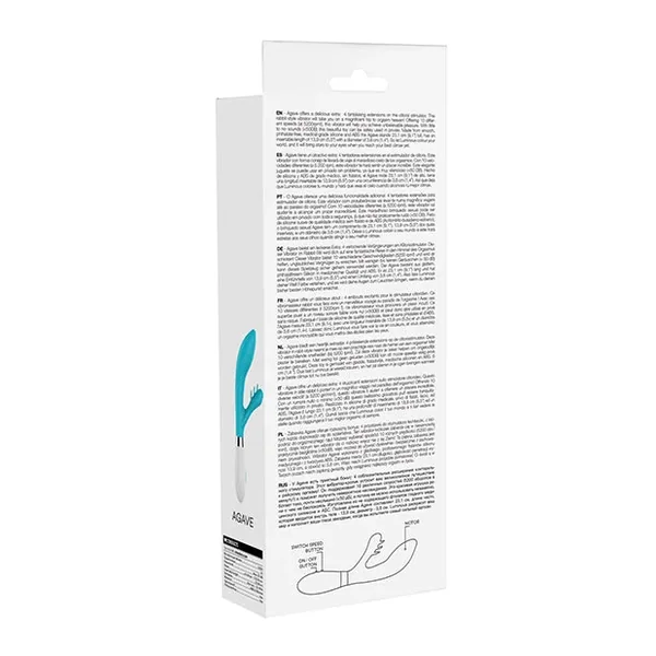 Agave offers a delicious extra: 4 tantalasing extensions on the clitoral stimulator. This rabbit-style vibrator will take you on a magnificent trip to orgasm heaven! Offering 10 different speeds (at 5200rpm!), this vibrator will help you achieve unbelievable pleasure. With little to no sounds (<50DB) this beautiful toy can be safely used in private. Made from smooth, phthalate-free, medical-grade silicone and ABS the Agave stands 23,1 cm (9,1") tall, has an insertable length of 13,9 cm (5,5") with a diameter of 3,6 cm (1,4"). This beautiful toy is battery operated. Just put 2 AAA batteries and enjoy a undisturbed pleasurous playtime!