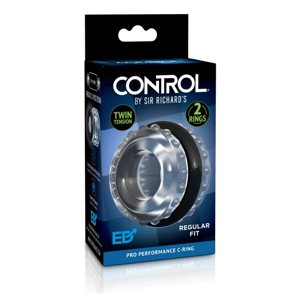 Sir Richard’s Control Pro Performance C-Ring Black. Control has serious benefits. Crafted with the power to influence, Pro Performance C-Rings are flexible rings created to hug the penis and testicles providing just the right amount of pressure to extend performance and intensify orgasms. This ring uses a formula that adds the perfect squeeze for most users. Worn together or separately, Pro Performance C-Rings provide genuine versatility and strength allowing for prolonged and powerful pleasure. Pro Performance C-Rings can help combat Erectile Dysfunction ED the c-rings can be worn around the base of the penis, together or separately, to restrict blood flow and help extend erections. When worn around the testicles, c-rings can help erections last for a longer period and can create a stronger climax. Key tip! A c-ring can restrict blood from leaving an erect penis, but it can also inhibit blood from flowing into a penis. So, it is best to place a c-ring on an almost erect penis to allow it to perform properly. Dimensions main ring 2.3 inches in diameter, 1.6 inches depth, 1.2 inches inner diameter. Tightening ring 2 inches diameter, 0.6 inch in depth, 0.9 inch inner diameter. Mix up C-Rings to maximize up your performance! Wear together on shaft. Wear single, double or triple c-rings on the penis to increase erection strength and performance. Use separately on balls and shaft. Wear single or double c-rings on the shaft for added partner pleasure. Wear a single ring around testicles as a ball stretcher, ball squeezer, or to delay and strengthen climaxes.
