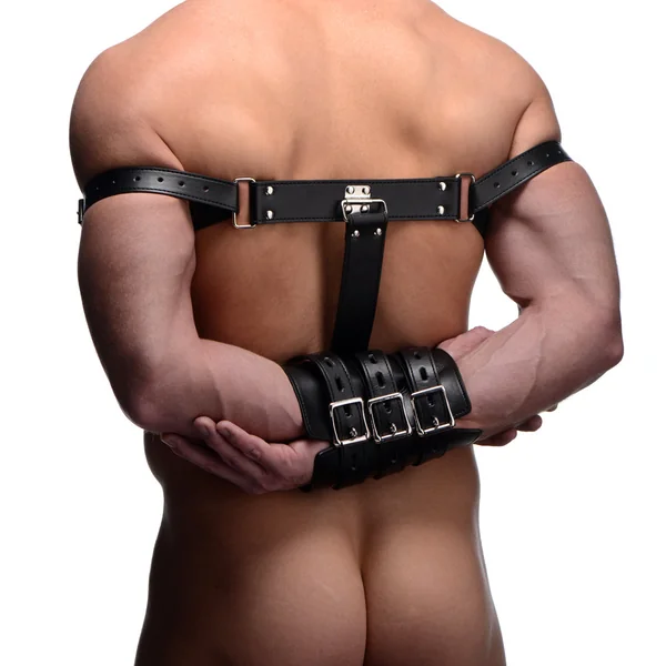 This hardcore bondage tool goes beyond standard wrist cuffs and traps your sub’s arms crossed at the forearm behind their back, perfect for leaving them helplessly vulnerable to your desires. The bicep loops and wrist sleeve all have adjustable locking buckles so you can get a perfect fit for the wearer that’s comfortable but secure, ensuring there are no wannabe escapees in your dungeon! Best of all, the PU leather makes this a vegan-friendly restraint so everyone can enjoy it!