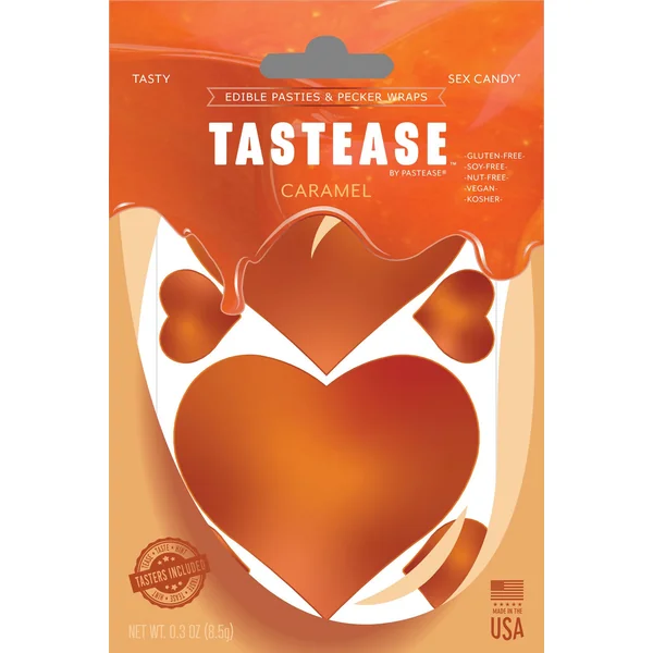 Tastease Caramel Candy Edible Nipple Pasties and Pecker Wraps Sex Candy by Pastease Pasties. Tasty sex candy! Sex Candy rules and directions. Keep it clean. Always start and finish with clean, dry skin. Keep it fresh. Open only when you are ready for tasting, teasing and using. Lick it, stick it. Moisten dampen the area or the back of the pasties with water, saliva or something else nearby and wet. Place each down once and smooth out and around the contours of your chosen surface. Savor the flavor. Share your treats with someone sweet. Lick. suck and savor to completion or your satisfaction, which ever comes first. Tastease are the tastiest sex candy you will ever taste and intended for your mouth whole only. Do not go stuffing them in or sticking them near any orifice. Clean up before penetration. Have fun but use at your own risk, yes it has to be said. Edible Pasties, Pecker Wraps Caramel Candy Sex Candy by Pastease Brands. Categories: Adult Candy and Erotic Foods, Lingerie, Clothing, Sexy Costume Accessories, Pasties and Accessories, Valentine’s Day, Xmas Items. Restricted, Amazon Restricted. New primary image package. 2023.