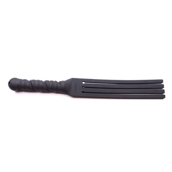 Tawse It Overboard from Tantus. Tawses (pronounced taws) were used as corporal punishment in public schools in Scotland until 1987. The impact of the standard leather tawse can be very intense; even more so in Tantus Silicone. Tawse It Overboard features four tongues, each .375 inch thick, 8.5 inches in length. The density is intense. Because it is Tantus Silicone, it transmits energy very effectively and takes very little in terms of strike force. The handle 1.5 inches by 6 inches is very effective for blunt impact play and as a potential heavily textured dildo for internal use. And, because the Tawse It Overboard is made from Tantus Silicone you can thoroughly cleanse the toy. With a little care, Tawse It Overboard will last a lifetime. Safe for your body. Made from Tantus own unique formula of 100% Ultra Premium Silicone. Easy to clean. Eco-friendly, hypoallergenic, hygienic. Boilable, bleachable and dishwasher safe. Handle diameter 1.48 inches. Tongue width 0.4 inch, length 8.75 inches. Total length 17 inches. Video.